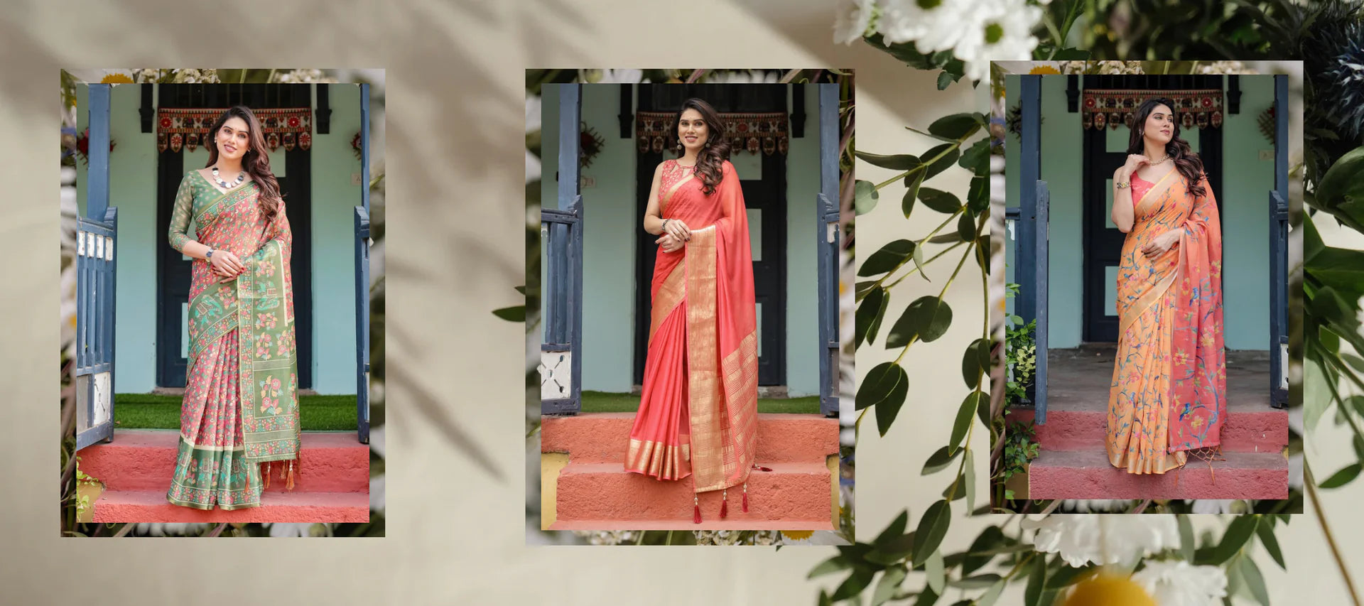 Beige Green Handloom Cotton Saree with Lotus Print & Colorful Peacock Pallu